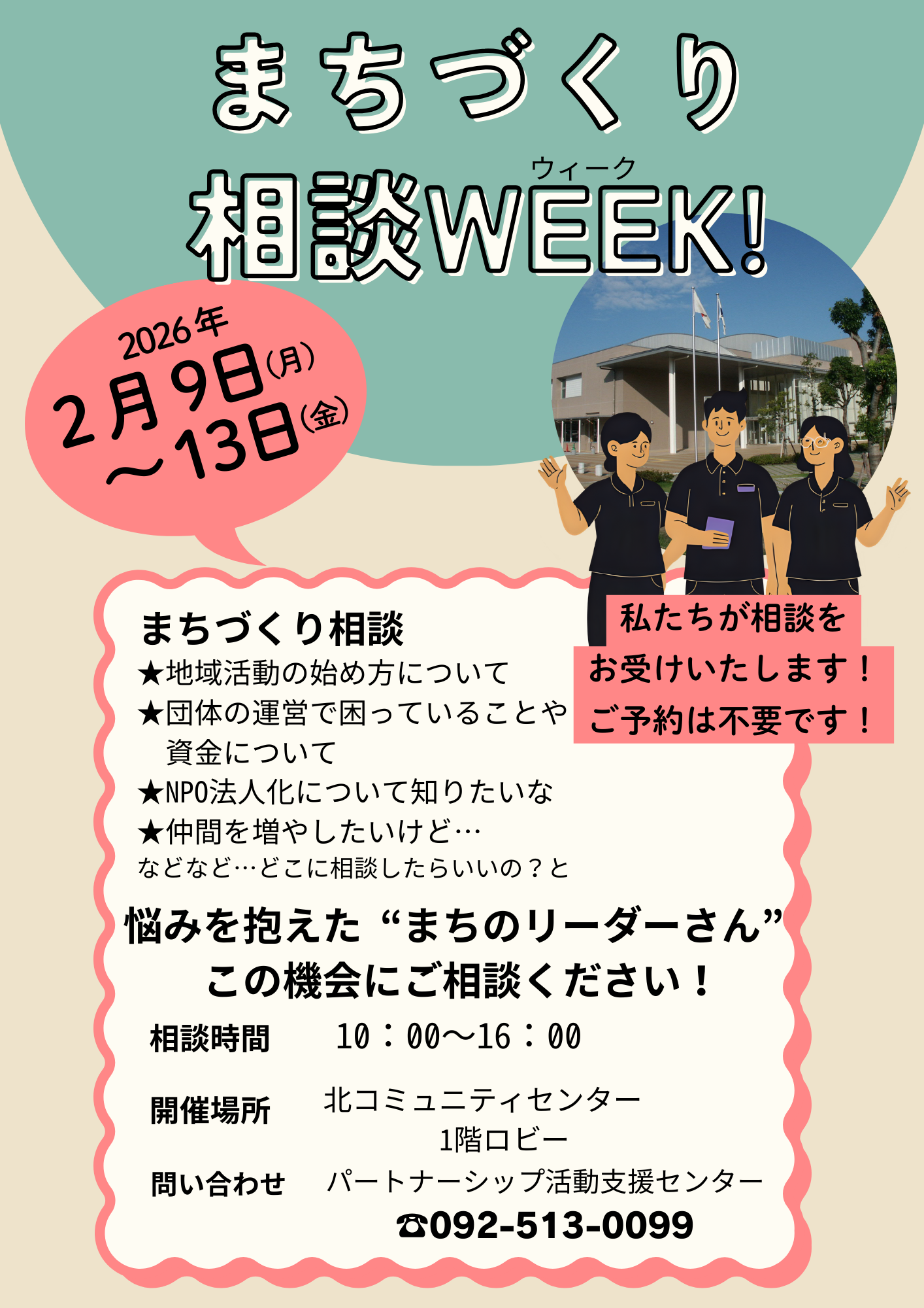 2月北コミュ二ティセンターの相談WEEK開催情報です。