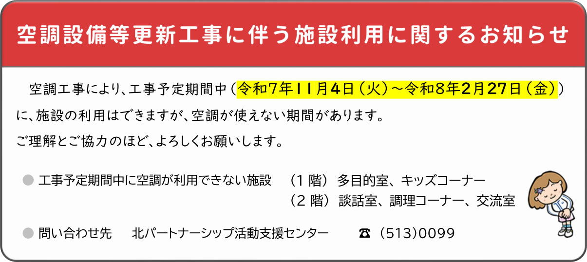 - 空調設備等更新工事に伴う施設利用に関するお知らせ